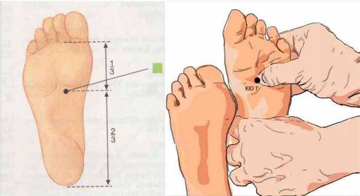 Как ее найти: подожмите все пальцы, на стопе получится углубление, в нем и надо искать этот «родник».