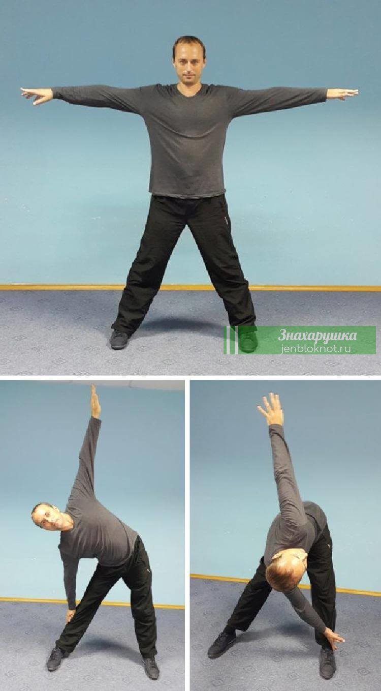 Вернитесь в исходное положение. Повторите для противоположной стороны — по 5–6 раз на каждую.