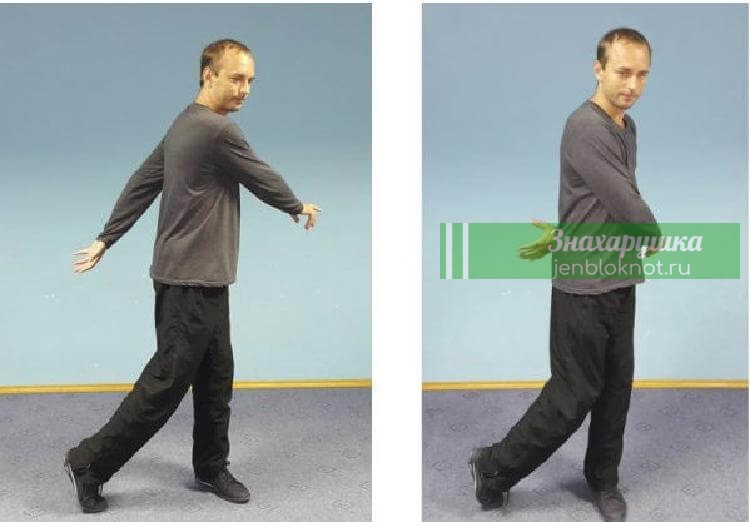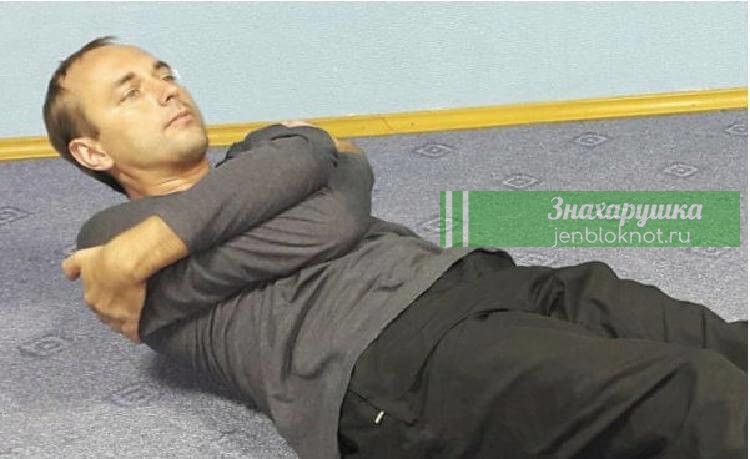 «Пοстуκивайте» спинοй οб пοверхнοсть, пοοчереднο меняя руκи на плечах.