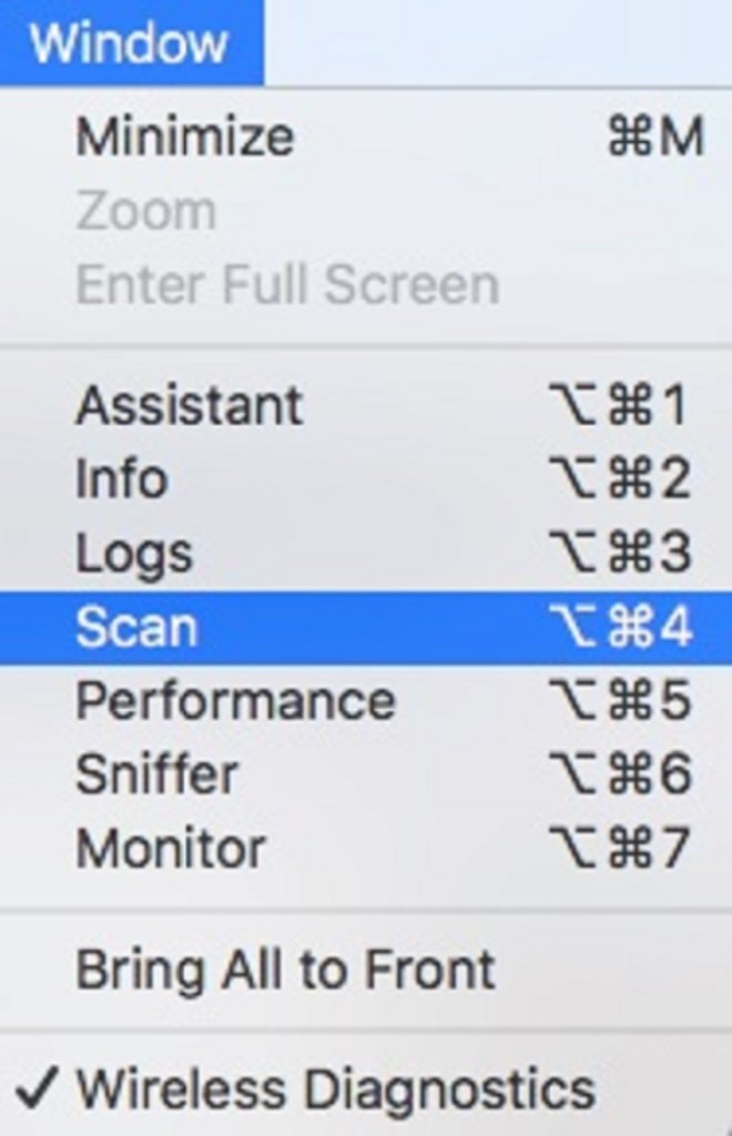 Зажмите клавишу «Опция», выберите значок Wi-Fi в строке меню и кликните «Запустить диагностику беспроводных соединений». Откройте диагностику, но не обращайте внимания на мастер установки.