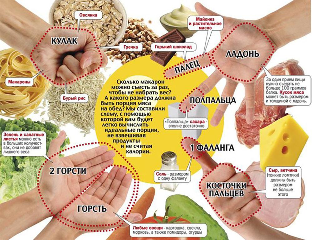 И как работает рацион рук? А очень просто и вы сможете легко распрощаться с лишним весом и оставаться в отличной форме! Части рук представляют собой объем той части, которую вы должны потреблять в один приём пиши, не более того.