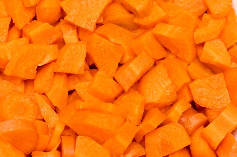Очищенную морковь нарежь кубиками, залей водой и вари на медленном огне до готовности.