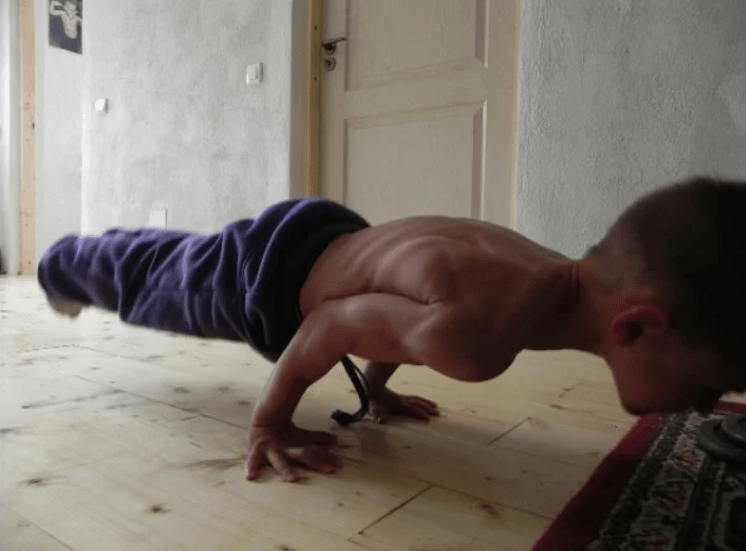 мог отжиматься на руках, как на полу, так и на перекладине;