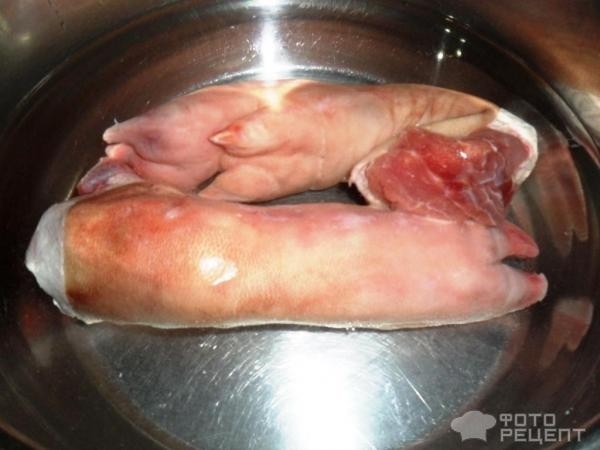 Итак, чистые ноги заливаем холодной водой и ставим на плиту. При желании, для цвета и вкуса, можно положить в кастрюлю морковку и целую луковицу. Но это скорее праздничный вариант.