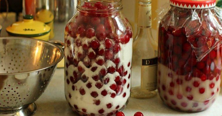 Высыпать сахар на ягоды и тщательно перемешать. Залить смесь водкой. Посуду накрыть пергаментной бумагой и обвязать веревкой.