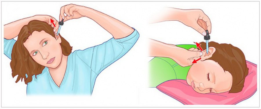Капните 2-3 капли средства в каждое ухо и вставьте вату.