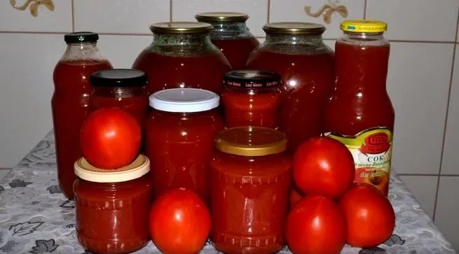 В стерилизованные банки осторожно разлей томатный сок и тщательно закрути крышки. После окончательного остывания сока поставь банки в прохладное место.
